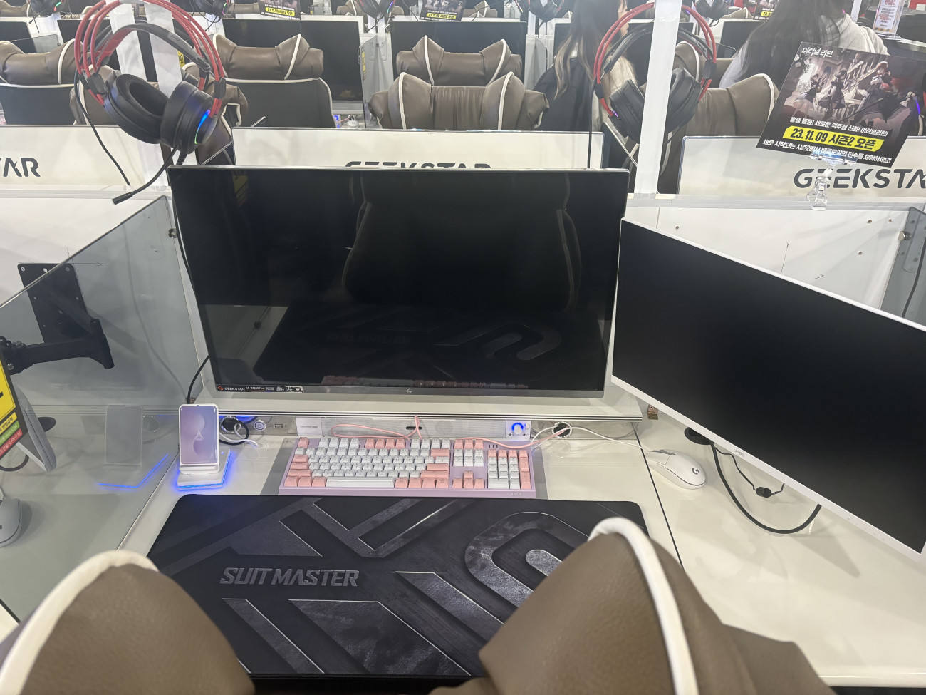 듀얼 모니터 좌석 추가로 1개 화면으로는 불편한 손님들을 위한 좌석~!