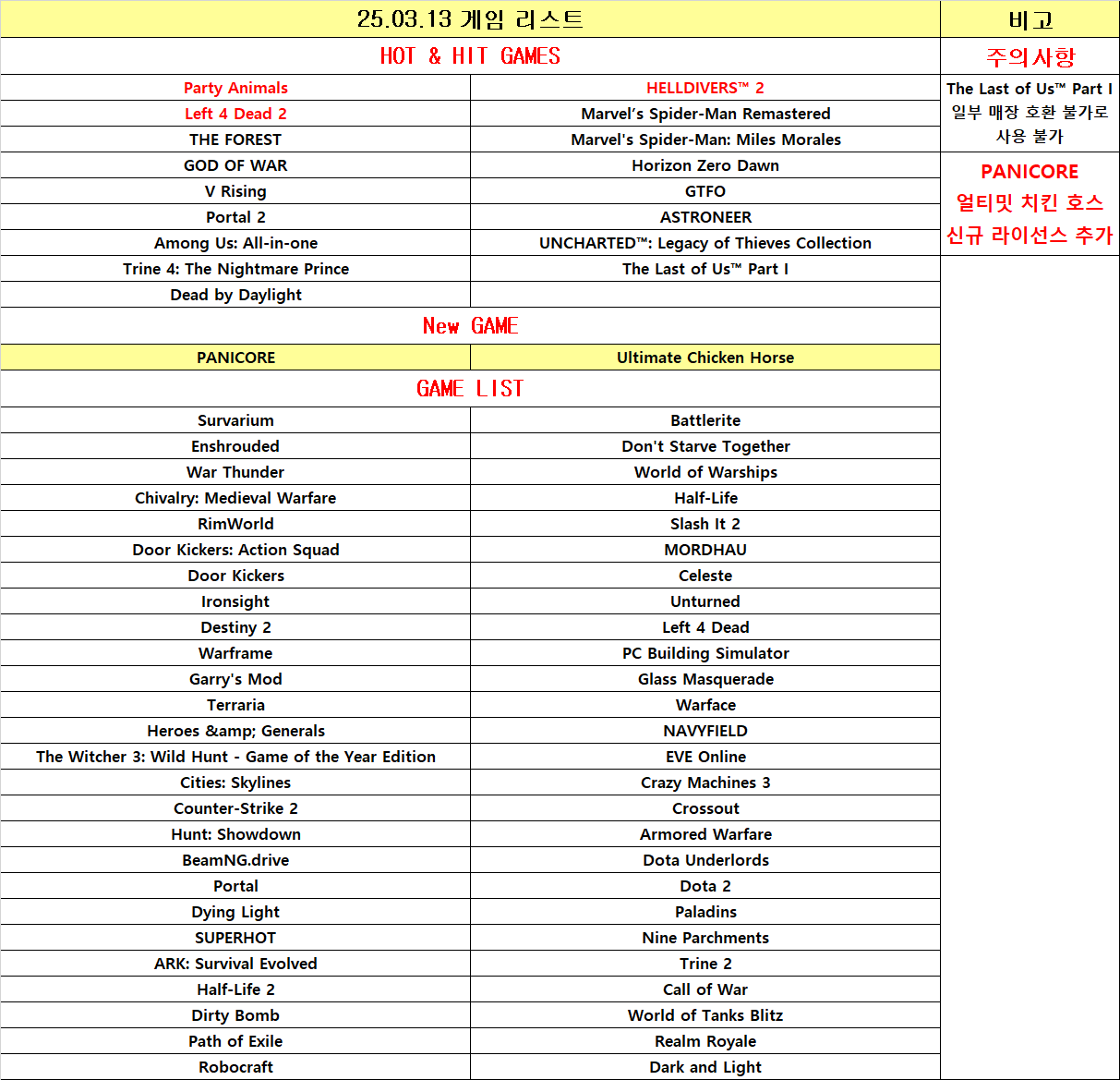 이어서, 오즈PC카페에서 보유 중인 스팀 게임을 알려드립니다.