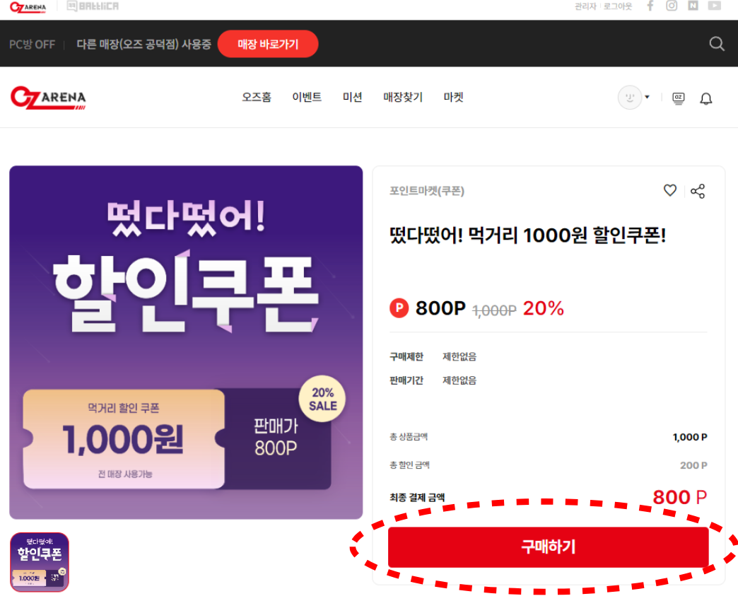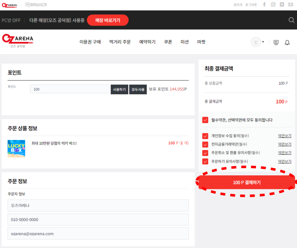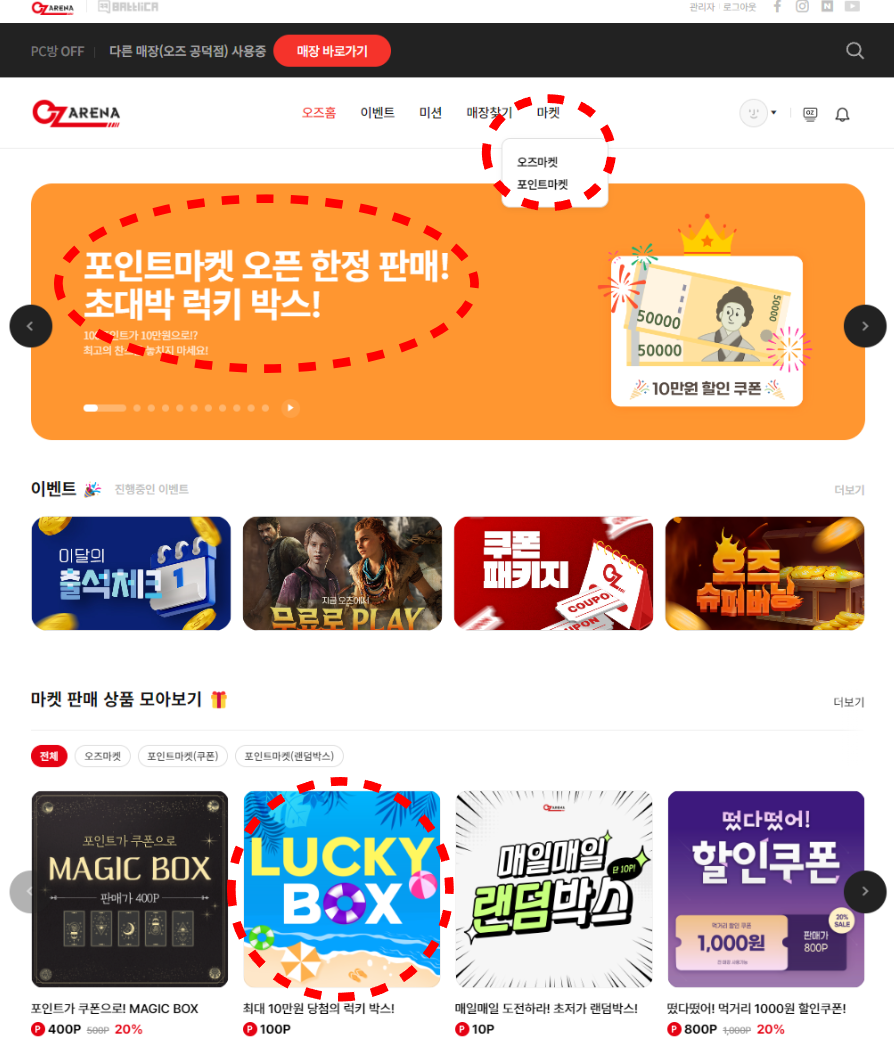 오즈아레나 홈페이지와 옵티멈존 PC카페 매장 이용에 관한 FAQ입니다.1. 포인트마켓 이용 방법