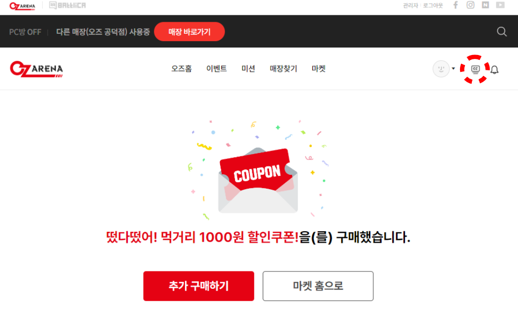 ※쿠폰 상품의 경우 결제완료 화면 우측 상단의 OZ 아이콘에서 쿠폰 확인 가능