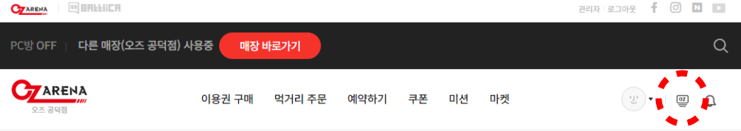 1. 오즈아레나 홈페이지 우측 상단 'OZ 아이콘' 클릭
